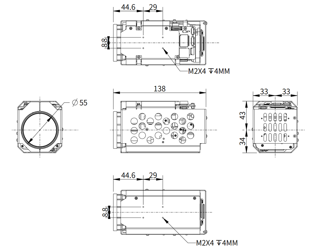 > Hỗ trợ đầu ra video kỹ thuật số MIPIđồng bộ, có thể chuyển đổi thành đầu ra HD - sdi.